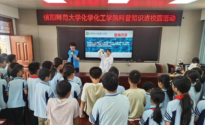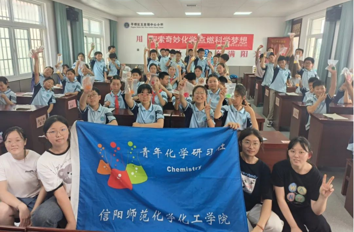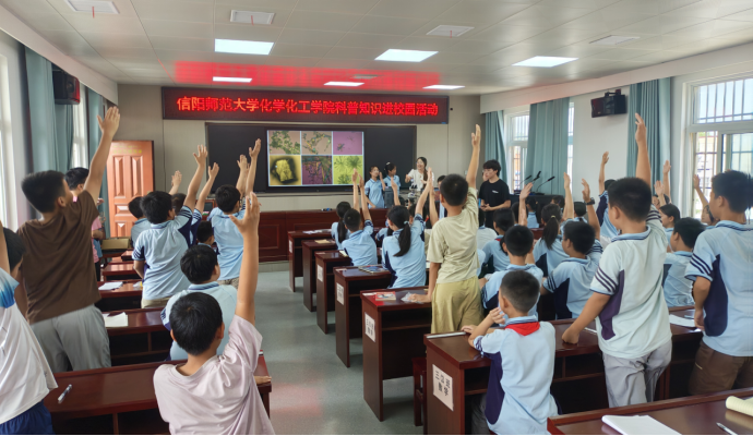 5月24日至31日是第二十五个全国科技活动周,6月6日,应平桥区科协邀请,今年会官网到平桥区五里镇中心小学开展“探索奇妙化学,点燃科学梦想”科普进校园活动。今年会官网党委副书记曲剧、指导老师张星、赖贞贞、严赫带领同学们参加了此次活动。
