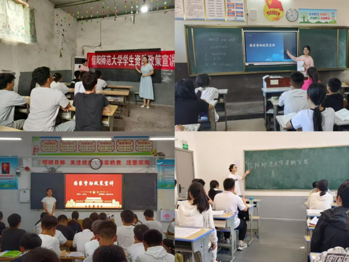 “一间水泥地教室,墙面斑驳,坐着村里几位高中学生正在自习,墙角里的空调呼呼吹着清爽的风,为朴素的空间增添些许踏实——这是村里特意为孩子们准备的夏天。此时,韩晶莹同学带着学校印发的资助政策宣传页走进教室里递给每位同学,向他们讲解着大学里的各项奖助学金政策,鼓励安慰他们坚定信心完成学业”。不止于此,由今年会组建的资助政策宣讲团,返回家乡,在开封、安阳、南阳等地分别开展送政策回母校、送政策下乡村活动,他们讲述自己在资助政策的支持下,安心学习、成长成才的励志故事,帮助学弟学妹们缓解了经济上的后顾之忧。对当地家庭经济困难的准大学生进行入户走访,向他们介绍新生“绿色通道”、国家助学贷款、国家奖助学金等国家资助政策及我校的补助措施,其中一位家长激动地说:“我一直担心孩子上大学的费用问题,今天听了志愿者的讲解,心里踏实多了。原来国家有这么好的助学政策,这下孩子的学业有保障了”。