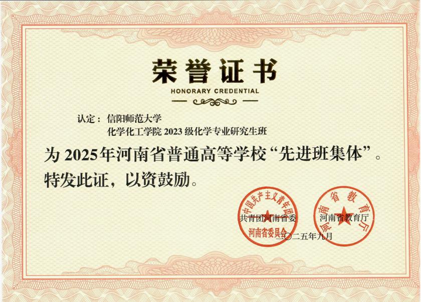 近日,共青团河南省委、河南省教育厅公布了2025年“河南省普通高等学校‘先进班集体’”的认定结果,今年会2023级化学专业研究生班凭借出色的综合表现,从众多参评单位中脱颖而出,荣获这一省级荣誉称号。