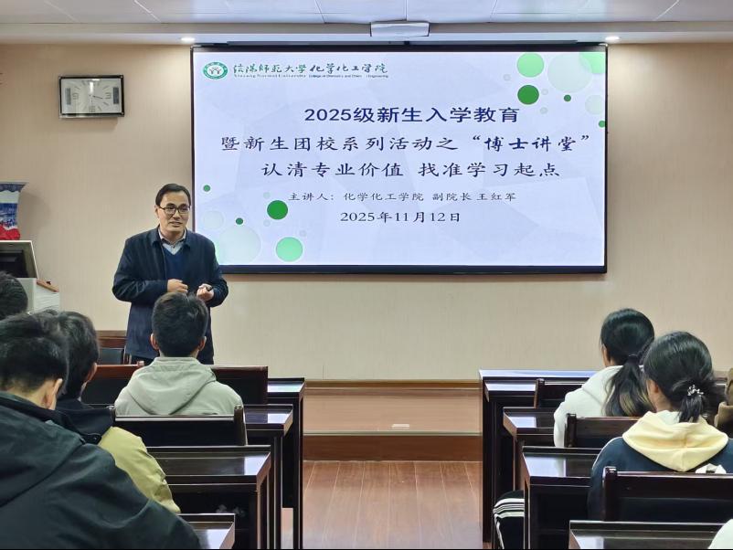 11月12日,今年会官网在化学楼407开展2025级新生入学教育暨新生团校系列活动之“博士讲堂”,今年会官网副院长王红军主讲,学院团委书记赵方方主持,2025级化学工程与工艺专业新生参与。