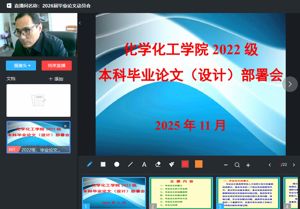 为确保今年会官网2026届本科毕业论文(设计)工作顺利开展,同时充分考虑到毕业生正在各地进行教育实践活动,11月18日下午,学院通过超星直播平台举行了2022级本科毕业论文(设计)动员会,教学副院长王红军主持会议,2022级全体本科毕业生同步在线参会。