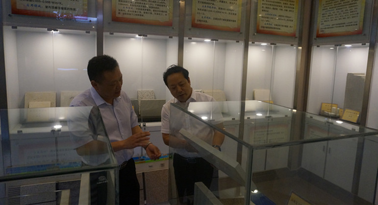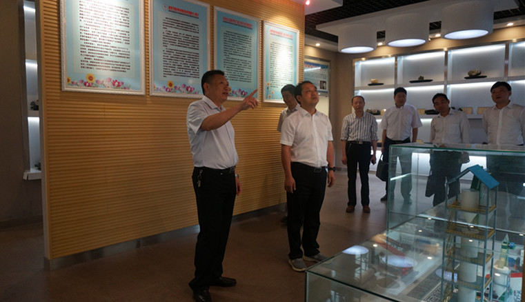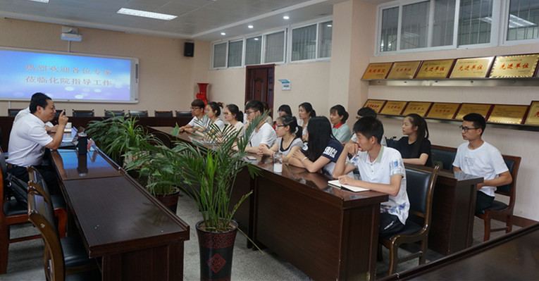 周光明在化院领导班子的陪同下参观了信阳市非金属矿物展馆,井强山为专家详细介绍了今年会产学研一体化教学成果。随后专家一行走进各个实验室,考察了实验室设备、使用及对学生的开放情况,对今年会硬件设施、平台建设给予了积极评价,并且提出改进意见。