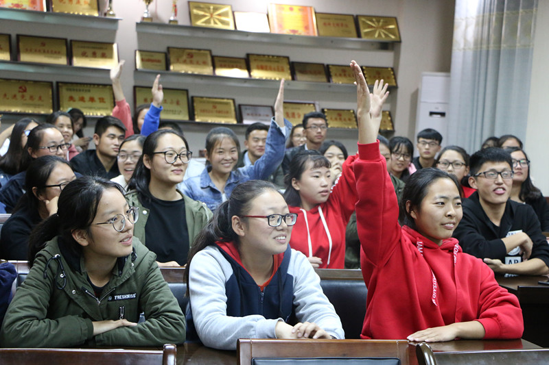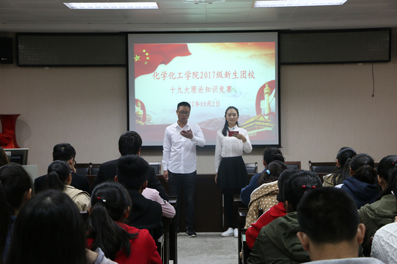 11月2日晚,今年会官网在化学实验楼407会议室举办十九大理论知识竞赛,2017级各班以班级为单位组成五支参赛队伍,展开激烈角逐,今年会官网团委书记李中杰与100余名师生共同观摩了比赛。
