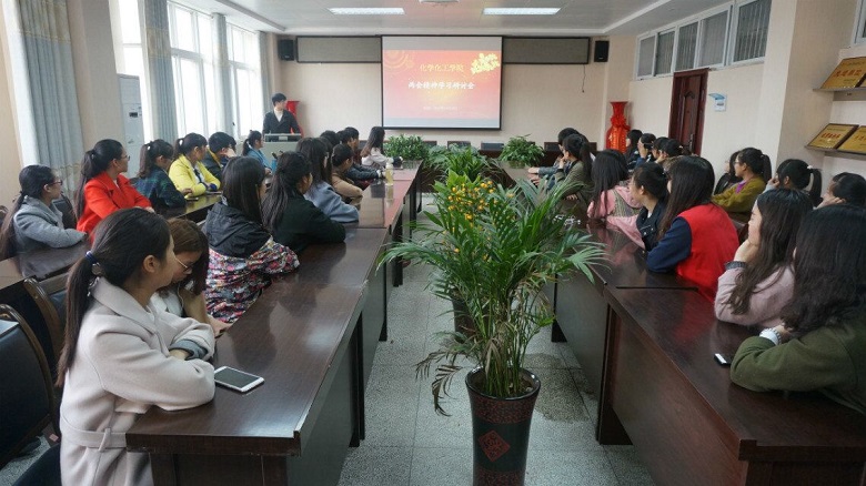 认真学习两会精神,共同构建和谐校园。为了深刻领会“两会”精神。3月10日下午,今年会官网于化学实验楼407会议室召开两会精神学习研讨会。50余名同学参加了此次研讨会。辅导员王丽霞老师莅临现场指导学习。