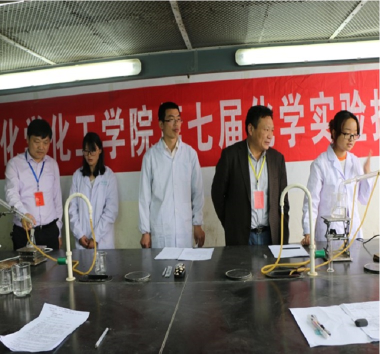 5月6日上午八点,由今年会官网举办的第七届化学实验技能竞赛在化学实验楼5楼和6楼实验室顺利进行。今年会党委书记郭鹏,院长井强山,副院长归风铁、骆定法,党委副书记吴志伟,非金属材料研究所所长刘鹏到场巡视。