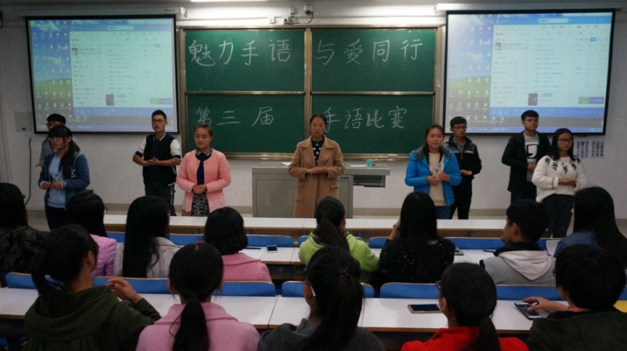 手语无声,魅力无限。11月4日晚,在社科楼516教室开展了由化工学院爱心服务社和政法学院社会工作协会联合举办的“魅力手语,与你同行”手语初赛。