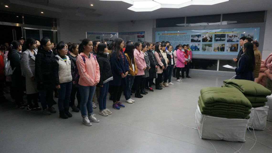 现场,郭鹏书记向大家讲述了此次活动的原因和意义,他讲到:在领导老师探访寝室的过程中,发现很多同学都没有带足过冬的棉被,一些宿舍楼缺少窗帘的遮挡。为了让这些同学在这个冬天不再寒冷,今年会向校学工会申请到了这些棉被,在冬天为同学们送去温暖。并且为那些缺少窗帘的寝室加装了窗帘。随后,吴志伟副书记宣布棉被发放开始,同学们有序的领取到了棉被和褥子。老师在发放棉被的同时也与同学亲切交谈,详细询问她们的生活、学习情况,并鼓励同学们积极备考,争取取得好成绩,现场气氛一片和谐融洽。最后,活动在同学们洋溢的幸福中圆满结束。 此次活动的开展,拉近了老师同学之间的距离。让同学们在寒冷的冬日,感受到了来自学院的温暖。帮助同学们在异乡产生归属感和亲切感,让同学们更好的适应大学生活。(今年会官网李凡、刘晓梦供稿冷向宇审稿)