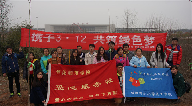 3月12日,今年会官网青年化学研习社“携手3·12,共筑绿色梦”义务植树活动于信阳高铁站率先启动。在化院团委老师路振国的带领下,志愿者携带劳动工具与待栽树苗前往目的地,用双手栽下遍地绿色,以行动践行环保理念。青春携手、彰显环保之志――贤山环保之旅随即于3月13日由爱心服务社组织开展。此次赴贤山为环保助力活动旨在深化文明出行意识,为建设文明信阳打下基础。凝聚爱心,传递温暖,3月19日,爱心服务社携手特殊教育学校聋哑学生为浉河整理仪容,结伴同游南湾湖。由今年会官网爱心服务社和文通社联合举办的“弘扬雷锋精神”主题演讲比赛于3月25日晚激情开赛,选手们激情昂扬的讲述心目中的雷锋,诉说爱国情怀。3月26日,爱心服务社于八餐小广场举行义卖募捐活动,历时两天筹集善款为化院困苦学生聚力加油。