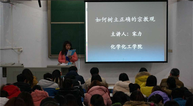 讲座伊始,孙俊永作会议开场白,总述本次会议的主题。紧接着宋力发表讲话。首先,她简单概述了有关安全的各个方面,让同学们了解更多的安全知识。接着她宣读《信阳师范学院关于学生公寓存放和使用安全隐患物品的处分细则》,列举学生公寓内禁止存放和使用的安全隐患物品,一些安全隐患行为以及学校针对这些作出的处分,并强调学校是考虑各方面因素后,依据国家法律而制定的安全细则,让同学们意识到安全的重要性。随后,宋书记告诫同学们要树立正确的宗教观,细致讲述宗教的产生、内容、本质等,告诉同学们痴迷或违法宣扬宗教信仰的危害性。最后,宋书记还耐心为同学们解释了包括为什么在学校内不能穿戴具有宗教色彩的头巾或服装等问题。会议于一小时后在同学们热烈的掌声中圆满结束。