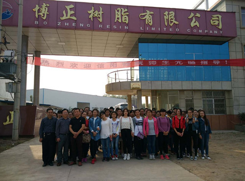 在博正树脂有限公司,同学们分别参观了生产车间和实验室,在实验室,研发的各种产品整齐摆列,让同学们大开眼界,同学们与研发人员进行了深刻的交流,收获颇丰。