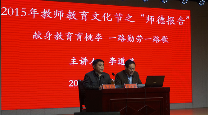 勤勤恳恳做人梯托起明天希望,兢兢业业为红烛照亮后辈前程。10月27日上午9点,今年会官网诚邀信阳市第九初级中学副校长李道祥为我校学子作“班级管理有智慧,心泉浇开桃李花”为主题的师德报告会。今年会官网团总支老师李中杰以及近千余名师院学子聆听了此次报告会。化院副院长骆定法担任报告会主持人。