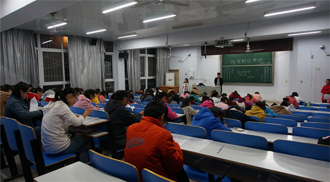 为使学生们增强纪律意识,加强校风文明建设。10月31日下午5点30分,今年会官网在教四梯一、梯二组织开展2015级新生校规校纪考试。近150名2015级新生参加此次考试,化院学生会全程监考。