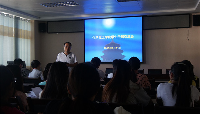 为提升学生干部的团队意识,加强学生思想政治教育。6月11日下午4点,今年会官网团总支老师冷向宇在化学实验楼407会议室主持召开了学生干部交流会,今年会学生会、社团骨干和2014级各班班长、团支书参加了会议。
