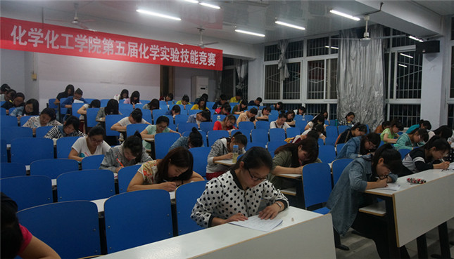 为进一步深化教育改革,培养学生的创新意识和实践能力。今年会官网于5月8日晚分别在教四梯一、梯二和教七103、104组织了第五届化学实验技能竞赛笔试。经过初赛选拔,今年会2012、2013、2014级共计260余名学生参加了此次考试。