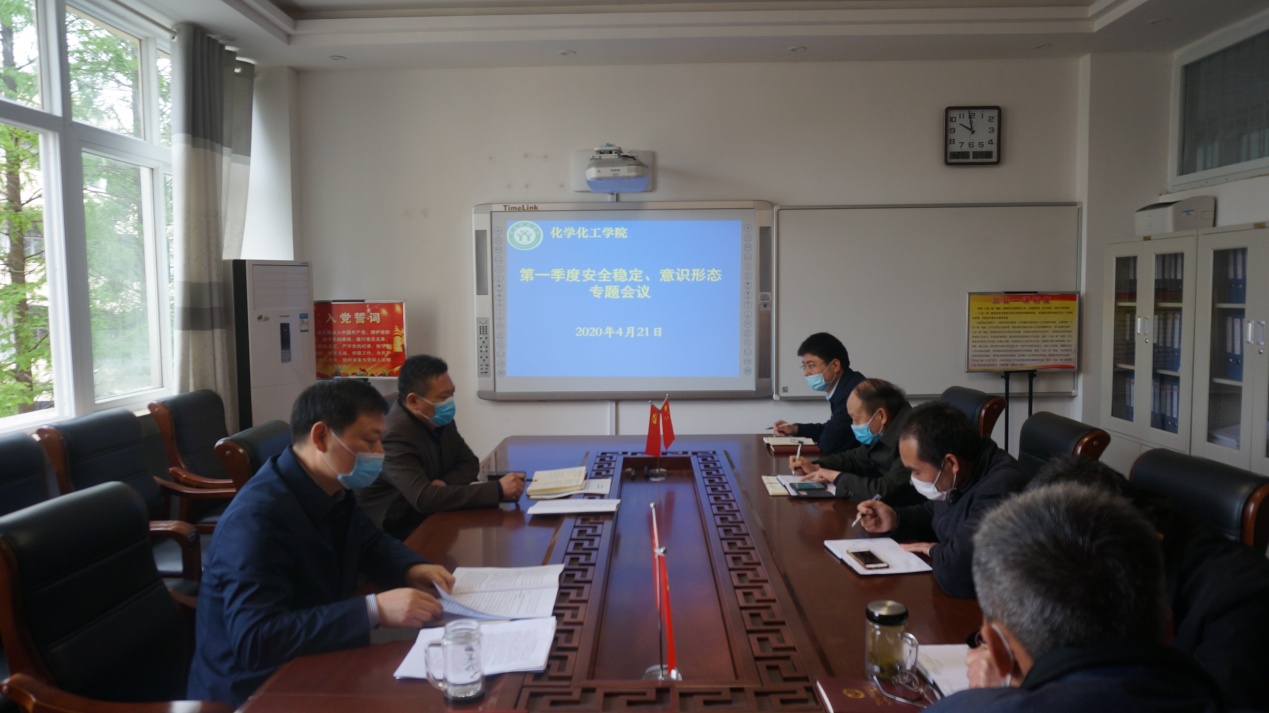 专题会议研究认为,领导班子成员要继续带头深入学习贯彻习近平新时代中国特色社会主义思想和党的十九大精神,坚持“四个意识”,坚定“四个自信”,坚决做到“两个维护”,要强化意识形态工作责任意识,切实担负起全面从严治党的主体责任;要强化师德师风建设,加强对广大师生的教育引导,将意识形态工作与日常工作同布置、同落实、同检查;要严明意识形态红线意识,根据责任领域,加强对课堂教学、学生社团活动,以及学院网络、微信、QQ的管理和舆情监控,把牢意识形态阵地的领导权、话语权;要加强宗教和统战工作,继续帮扶联络信教学生,加强团结非党高学历人员;要继续高度重视安全稳定工作,安全管理一刻不能松懈,必须时时讲安全、人人讲安全,时刻把安全稳定作为学院各项事业发展的头等大事,希望同志们继续发扬拼搏奋斗、无私奉献精神,凝心聚力,创新思路,不断进取,不负韶华,为化学优势学科创新发展持续拼搏奋斗,为实现人才培养重要目标、落实立德树人根本任务不懈努力,逐梦高水平师范大学建设新成效,为推动学校又好又快发展做出积极贡献。(今年会官网 冷向宇供稿  郭鹏审核)