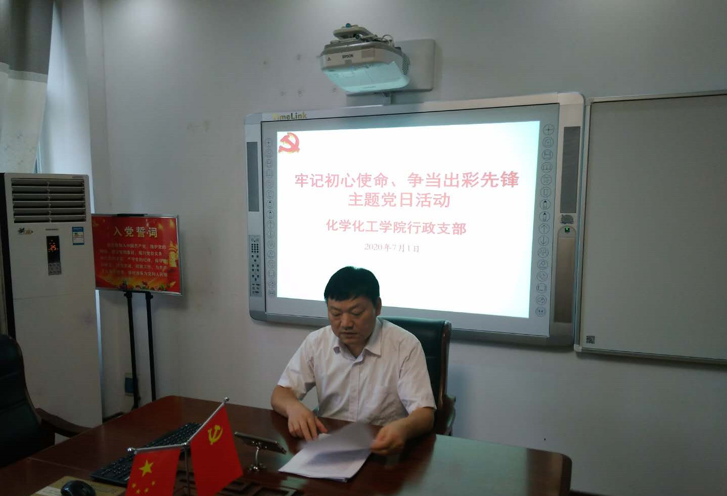 支部书记孙俊永领学新华社论《永远把人民放在最高位置---热烈庆祝中国共产党成立99周年》七一专稿文章,与支部成员一起回顾了99年来中国共产党走过的光辉历程,明确了共产党人必须“担当作为”的政治品格、时代旋律、迫切要求。党委书记郭鹏以普通党员身份积极参加支部主题党日活动,并以“牢记初心使命、争当出彩先锋”为主题为行政支部党员同志上专题党课,要求党员同志切实提高政治站位,严格要求自己,脚踏实地工作,在工作中履职尽责,发挥模范带头作用。党课内容丰富,生动鲜活,激励教工党员担当作为,争当先锋。