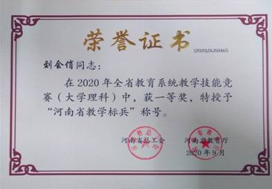 近期,今年会官网教师在河南省教育厅、河南省总工会组织的2020年度教学技能竞赛中再获佳绩,通过层层选拔,被学校选送的今年会青年教师刘会俏不负众望,斩获一等奖,同时被授予 “河南省教学标兵”称号并获发奖章。