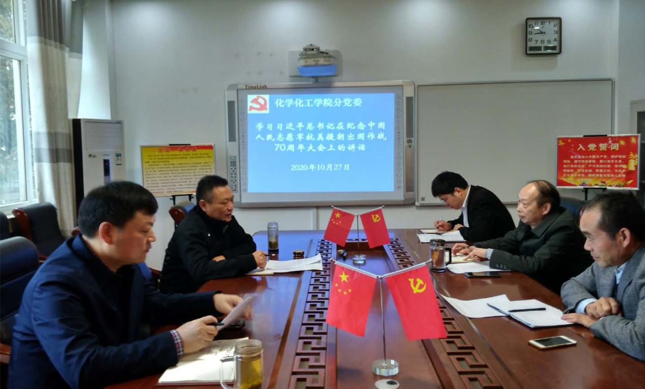 10月27日,今年会官网党委理论学习中心组集体学习《习近平总书记在纪念中国人民志愿军抗美援朝出国作战70周年大会上重要讲话》。分党委中心组成员集体参加学习。集体学习由分党委书记郭鹏主持。