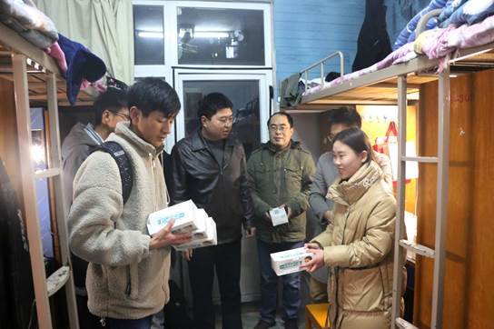 与此同时,老师们也提醒大家,防范胜于治疗,希望同学们提高预防意识,切实做好个人卫生防护,注意保持室内环境卫生和空气流通。如有发热等症状,要及时到校医务室就诊。冬季已经来临,由于冬季天气寒冷,气候干燥,是火灾事故、交通事故和人生伤害事故的多发季节。他们关切地询问了同学们的学习生活情况,希望同学们做好自己的人生规划,并叮嘱同学们平时要注意小心用电,遵守用电规则。