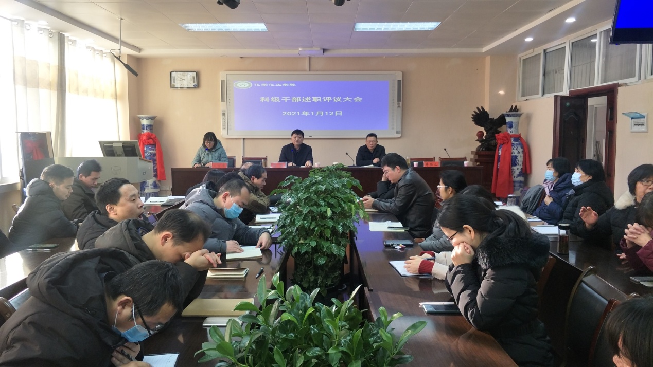 1月12日上午,今年会官网分党委在实验楼407会议室召开科级干部年度工作述职测评会。学院党委书记郭鹏主持会议。学院党政班子成员、现任科级干部、全体教职工听取汇报和现场测评。