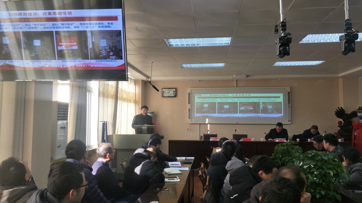 郭鹏代表学院党委作2020年度党委班子述职报告,并就个人岗责进行述职述廉述学。他汇报,学院分党委班子在校党委、行政的正确领导下,准确把握新时代新时期新形势下党建工作重点,以习近平新时代中国特色社会主义思想为指导,全面学习贯彻党的十九大、十九届二中三中四中五中全会精神,认真学习贯彻落实习近平总书记系列重要讲话,特别是注重抓好领会贯彻落实习近平总书记视察河南重要讲话精神,团结带领全院党员干部师生,巩固“不忘初心、牢记使命”主题教育为成果,全面加强党的政治建设,坚持党要管党,全面从严治党,以增强基层党组织的组织力,提升创造力、凝聚力和战斗力为目标,加大“两化一创”创建力度,抓好“强基引领”三年行动,大抓基层组织建设,重视基层基础,常态化持续开展“两学一做”,严肃党内政治生活,严格落实“三会一课”,严格党员教育管理,开展党员争先创优,牵头抓总,当好表率,开拓创新,踏实工作,提升了党建工作水平,为各项工作开展提供了坚强的政治、组织和作风纪律保障,以党建高质量推动学院事业发展高质量,2020年度学院各项事业取得优异成绩。他表示,2021年是“十四五”规划开局之年,也是建党100周年,是我们党实现第一个百年奋斗目标、向第二个百年奋斗目标出发之年,是学校和学院发展的关键一年,分党委将持续狠抓基层党建,常态化开展主题教育,以落实更名师范大学、申报博士授权单位、师范专业认证等重点工作为抓手,重视基层基础党的建设,坚强组织,营造氛围,鼓足干劲、团结拼搏,共同创造今年会官网新的更大成绩,为建设有特色高水平师范大学、大别山区域综合性大学作出新的更大的贡献,以事业发展优异成绩向建党100周年献礼。