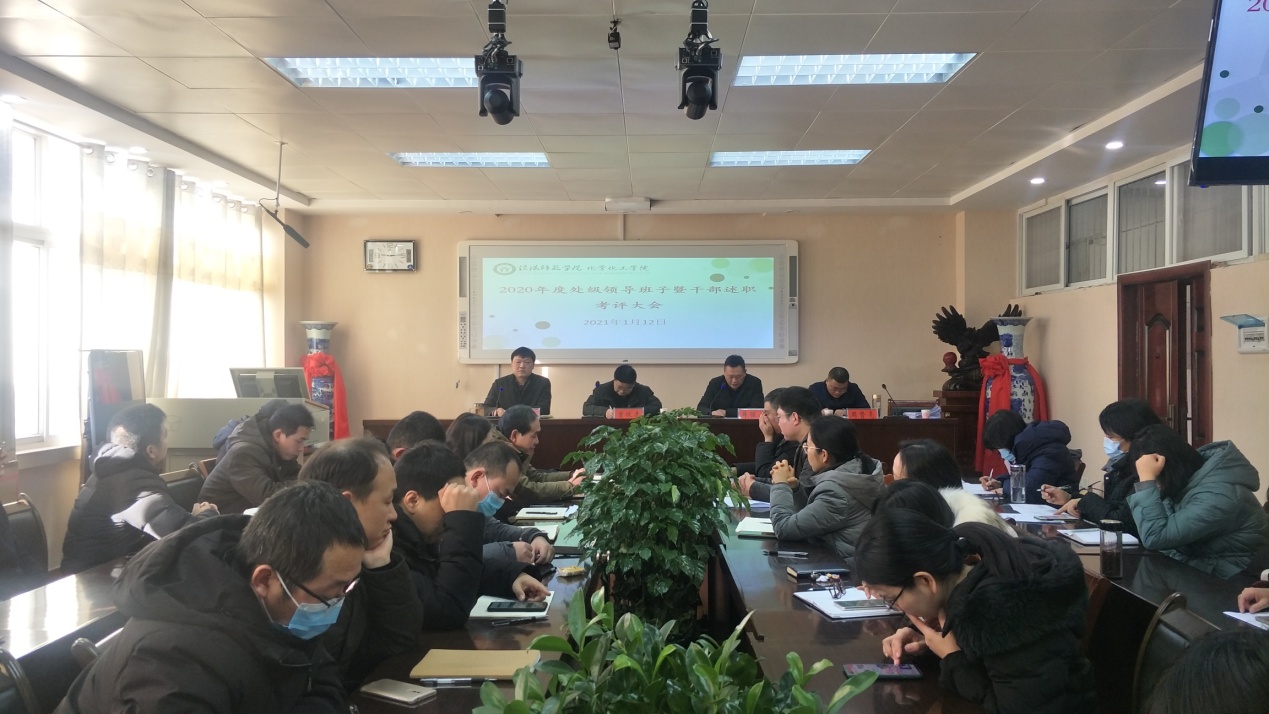 根据《信阳师范学院处级领导班子和处级干部2020年度考核工作方案》〔2020〕40号文件通知安排,2021年1月12日,今年会官网处级领导班子和处级领导干部2020年度考核大会在化学实验楼407会议室召开,学校第二考核组组长、党委委员、统战部长曾伏虎,考核组成员、组织部干部科科长周贤亮等一行,代表校党委考核工作领导小组对今年会处级班子、处级干部述职考核测评进行现场指导,学院领导班子和全体教职工参加了会议。考核会由学院党委书记郭鹏主持。