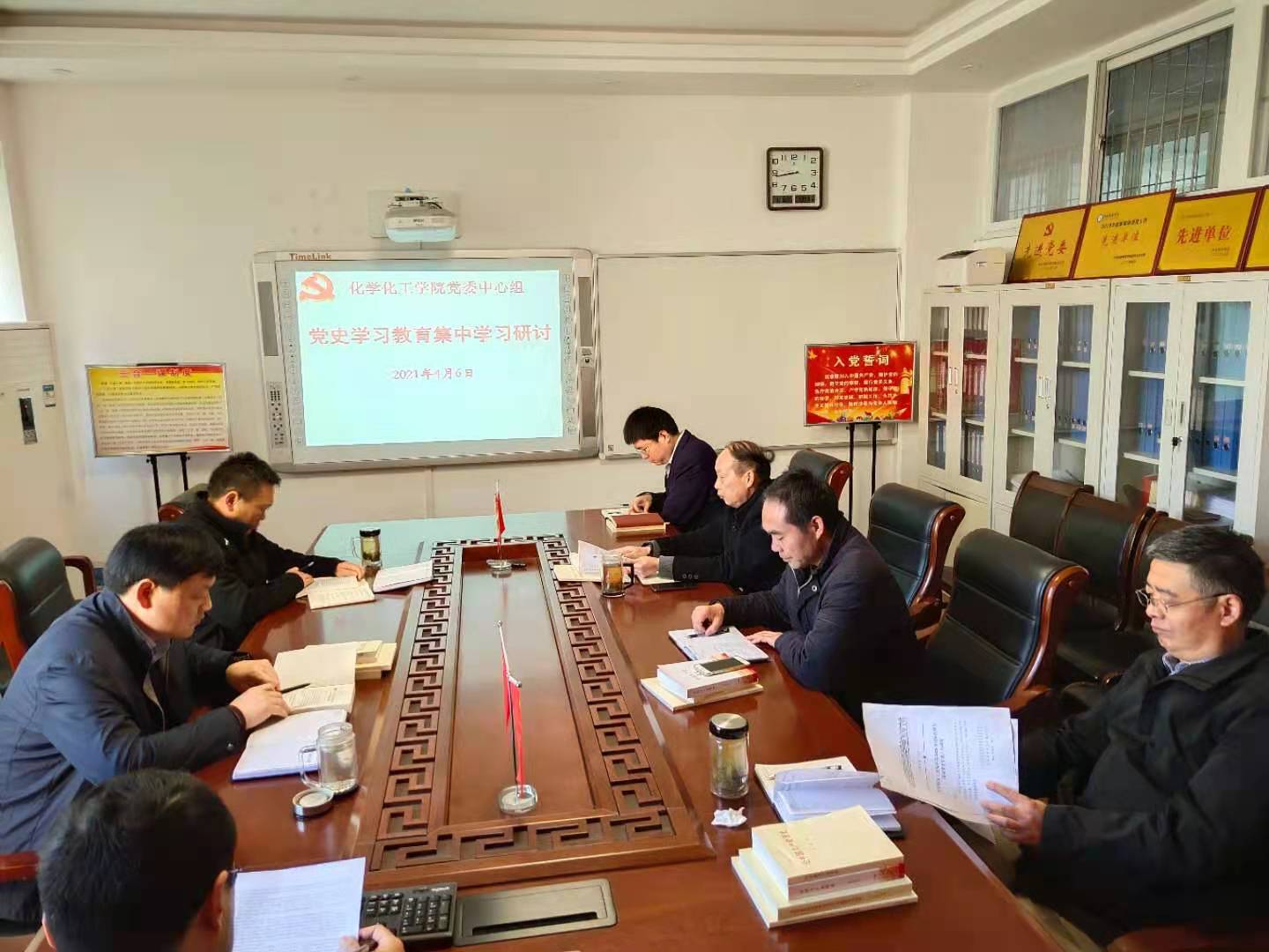 4月6日,今年会官网党委理论学习中心组在实验楼313“党员之家”举行集中学习研讨会,集中学习“中国共产党百年辉煌”和《中国共产党简史》第一章“中国共产党的创建和投身大革命的洪流1-6节”。学习会由党委书记郭鹏主持。