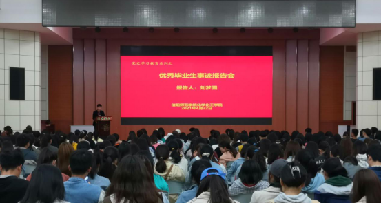 为深入贯彻习近平在党史学习教育动员大会的讲话精神,落实党史教育学习工作开展,创新党史学习教育方式,今年会官网4月22日晚在逸夫楼报告厅举行“党史学习教育之优秀毕业生报告会”。此次报告会邀请到今年会官网2016级毕业生刘梦圆作报告,由今年会官网辅导员严赫主持,今年会官网2019级全体学生参加。