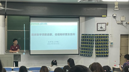 为深入贯彻国家助学贷款“资助育人”精神,落实为学生“办实事、办好事、解难事”,不断推进信阳师范学院2021届贷款毕业生工作安排,化学化工学院于2021年5月10日晚在教四201教室召开了国家助学贷款还款、征信知识普及宣传。会议由化学化工学院辅导员严赫主持,2021届贷款毕业生、各班助贷委员参会。