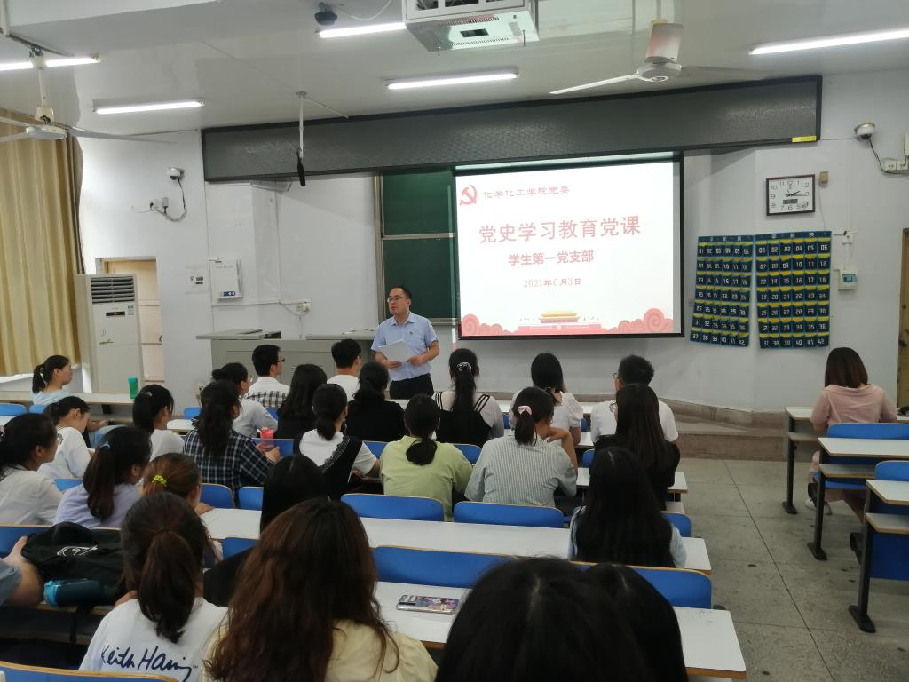 为庆祝中国共产党建党100周年,深入推进党史学习教育,6月3日,今年会官网学生第1党支部在教四T1教师进行党史学习教育主题党课。学院学生第一党支部书记冷向宇以《习近平教育强国思想》为题,为学生党员开讲党史学习教育专题党课。