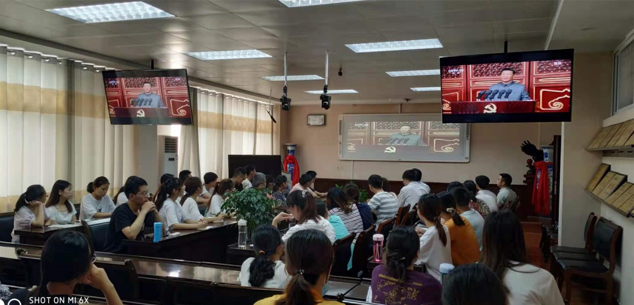 7月1日上午8时,庆祝中国共产党成立100周年大会在北京天安门广场隆重举行。中共中央总书记、国家主席、中央军委主席习近平出席并发表重要讲话。今年会官网党委书记郭鹏带头组织师生100余人在化学实验楼407会议室集中收看现场直播。