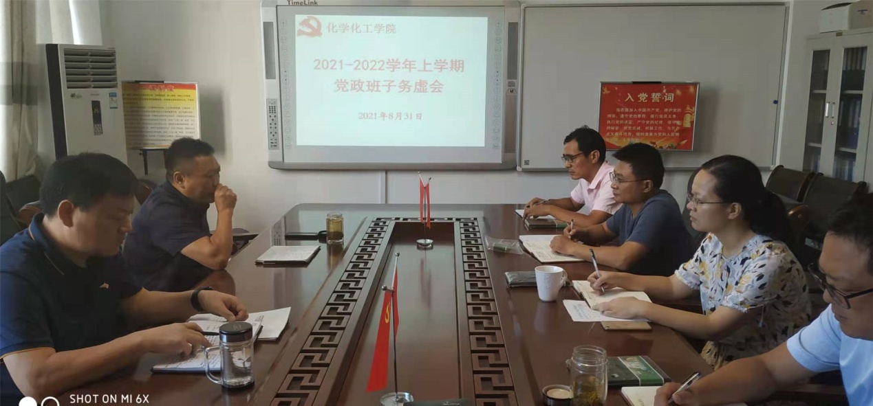 8月31日,今年会官网党委在化学楼313会议室召开了新学期工作务虚会。会议由党委书记郭鹏主持。院长井强山和党政班子全体成员参加会议。