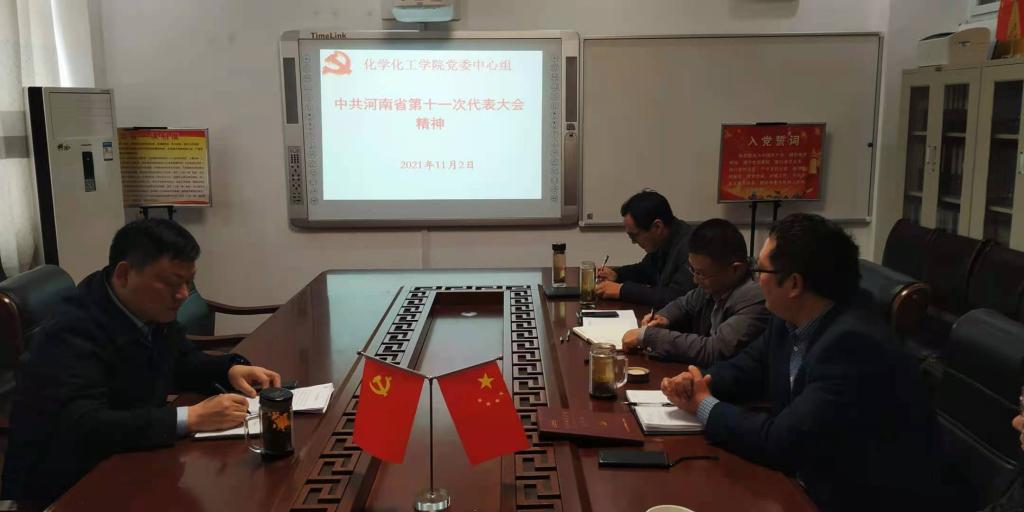 11月2日,今年会官网党委理论学习中心组在化学楼313“党员之家”召开专题会议,传达学习贯彻落实中国共产党河南省第十一次代表大会精神。学院党委理论学习中心组成员及党支部书记代表一起参加了会议。党委书记郭鹏主持会议。