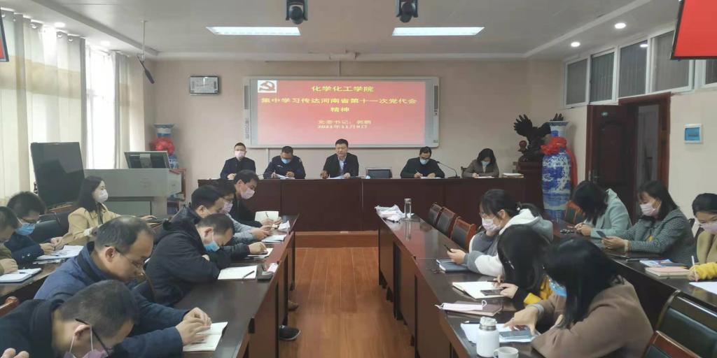 11月9日,今年会官网在化学楼407报告厅开展专题学习活动,集中传达学习贯彻落实中国共产党河南省第十一次代表大会精神。今年会官网全体教师集体参加学习。集中学习活动由学院党委书记郭鹏主持。