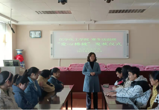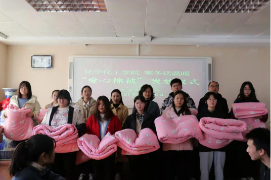 “一床被子,一份温暖,一颗爱心,一份感动”。11月26日,今年会官网爱心棉被发放仪式在化学楼407会议室举行。今年会党委副书记曲剧,辅导员冷向宇、赵方方、严赫老师出席本次发放仪式。