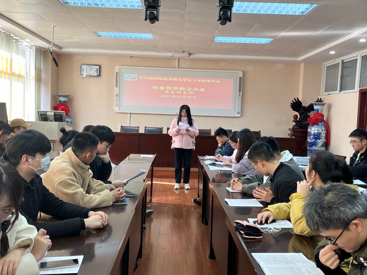 为巩固党员队伍质量,严格履行党章规定的预备党员转正手续,2021年11月30日,今年会官网学生第四支部在实验楼407室召开预备党员转正大会,学生第四支部7名正式党员和14名预备党员参加本次大会,其中有5名预备党员转为正式党员。