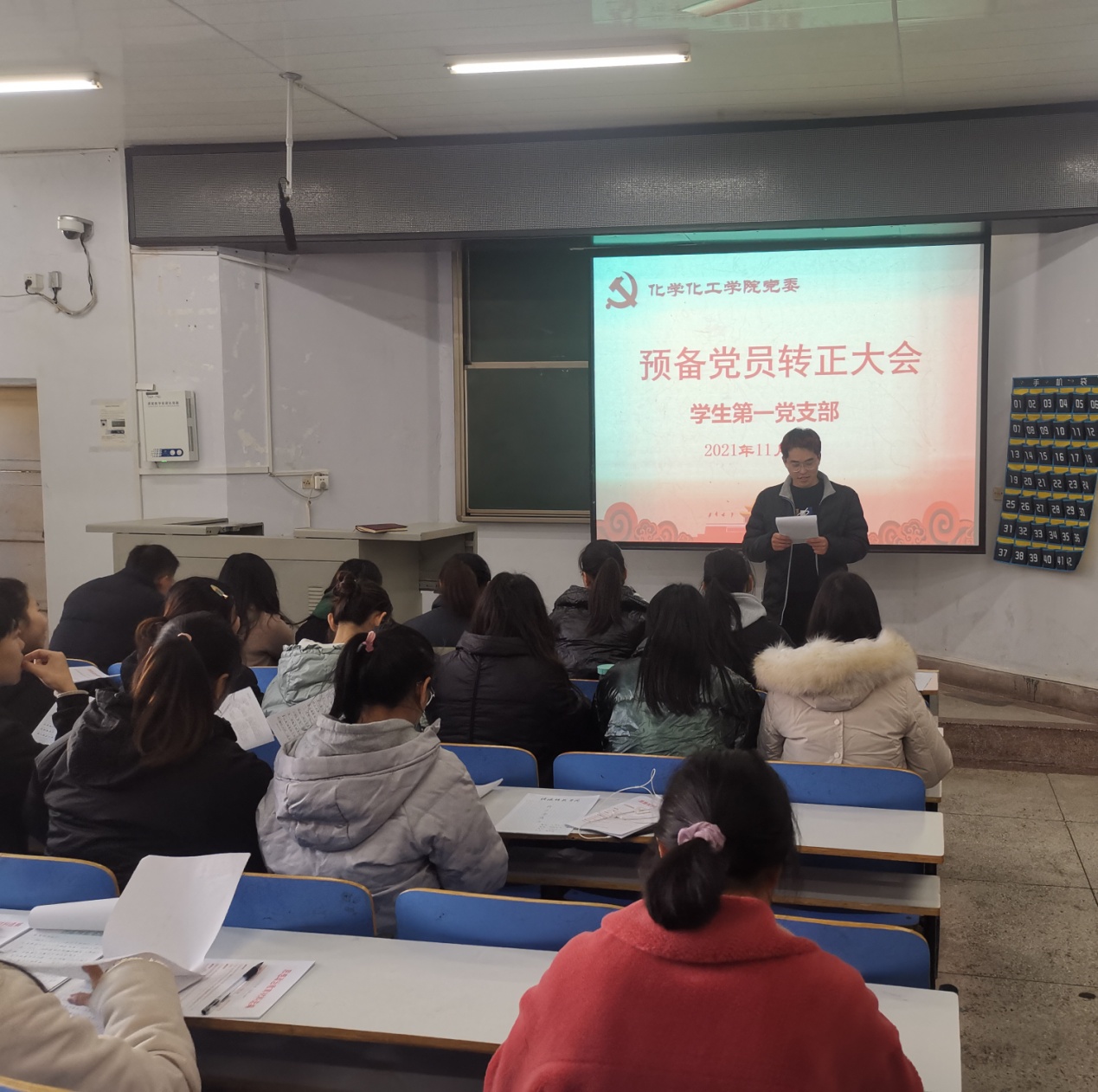 为巩固党员队伍质量,严格履行党章规定的预备党员转正手续,2021年11月30日,今年会官网学生第一支部在教四楼T1室召开预备党员转正大会,学生第一支部7名正式党员和19名预备党员参加本次大会,其中有8名预备党员转为正式党员。党支部书记冷向宇参加会议。