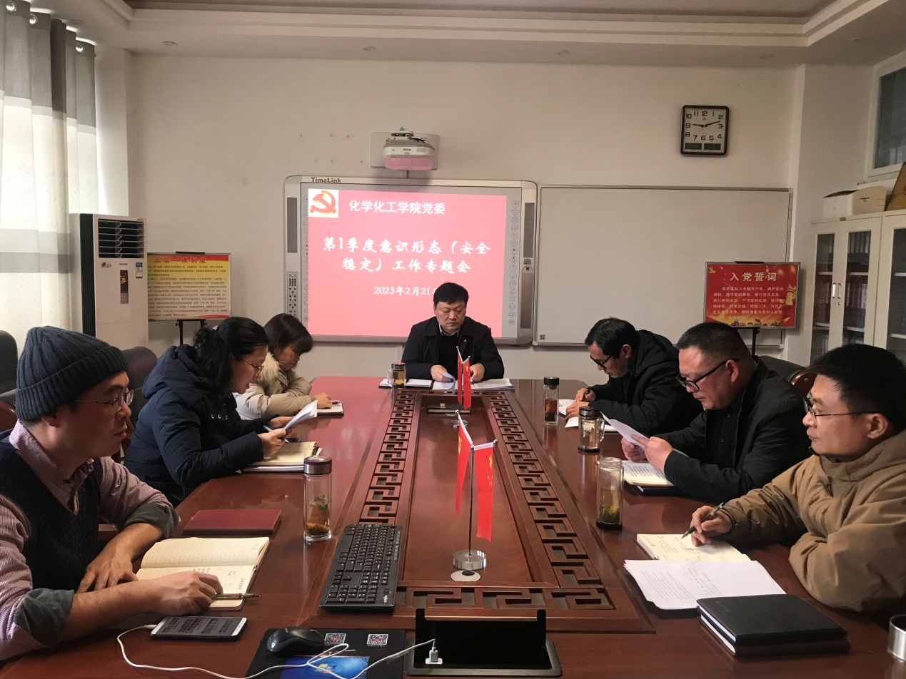 会议强调,领导班子成员要深刻领悟“两个确立”决定性意义,增强“四个意识”,坚定“四个自信”,做到“两个维护”,强化意识形态工作责任意识;要强化师德师风建设,加强对广大师生的教育引导,将意识形态工作与日常工作同布置、同落实、同检查;要严明意识形态红线意识,根据分管责任领域,加强对课堂教学、学生社团活动,以及学院网络、微信、QQ群的管理和舆情监控,把牢意识形态阵地的领导权、话语权;要加强宗教和统战工作,帮扶联络特殊群体学生和个别重点关注学生,团结引领非党高学历人士;要持续抓牢疫情防控常态化工作,严密防控筑牢校园师生健康安全防线;要继续高度重视安全稳定工作,时时讲安全、事事讲安全、人人讲安全,时刻把安全稳定作为学院各项事业发展的头等大事,安全管理一刻也不能松懈。
