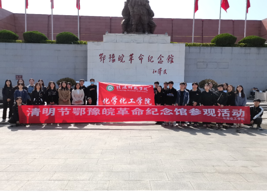 在鄂豫皖革命纪念馆前,学生代表彭俊源向大家讲述革命先烈辉煌事迹,缅怀革命先烈的丰功伟绩和崇高精神,并宣布清明主题团日活动正式开始。首先,全体人员庄严肃立,向英雄雕像默哀一分钟,表达对革命先烈的深切哀思和崇高敬意。接着,党委副书记曲剧进行发言,引导化院学子要厚植家国情怀,牢记革命历史,踏着前辈们的足迹砥砺前行、自强不息。然后,今年会团委书记赵方方带领大家在鄂豫皖革命纪念馆前庄严宣誓,传承英烈遗志,弘扬青春正能量。最后,全体成员共同为此次活动拍照留念,并由老师带领同学深入参观鄂豫皖革命纪念馆,追忆革命故事,追寻先烈足迹。