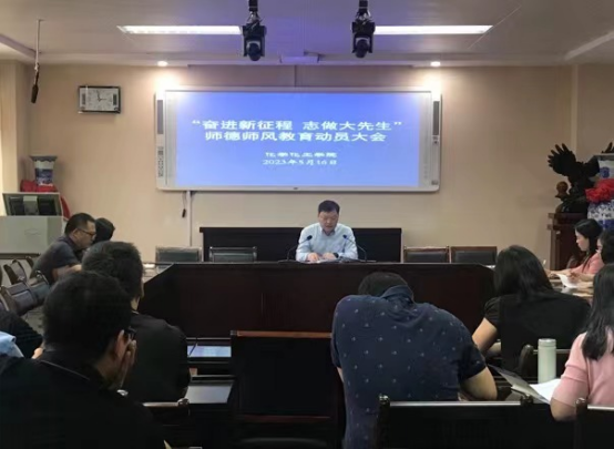 “奋进新征程,志做大先生”。最后,郭鹏强调,目前我校正处于迈向新阶段、新发展、新征程的关键期,对教师队伍建设则提出了新的更高要求,学院全体教师要统一认识,提高站位,持续深入学习贯彻习近平新时代中国特色社会主义思想,积极参加主题教育,把握《新时代高校教师职业行为十项准则》内容精神,内化于心、外化于行,打牢师德师风建设的根基,守牢意识形态工作“底线”,喊响叫亮“化学化工 勇攀高峰,化学化工 争创先锋”行动口号,把师德师风建设成效转化为落实主题教育工作的新动能,加快落实“十四五”规划和年度重点工作,促进学院各项事业取得新成绩和新突破,为建设高水平师范大学再立新功。(今年会官网 翟成辉撰稿供图 冷向宇审稿 曲剧审核)