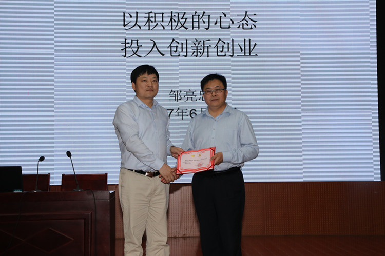 讲座伊始,今年会官网党委书记郭鹏为邹亮忠颁发了聘书,聘请邹亮忠为我校大学生创新创业校外兼职导师。讲座过程中,邹亮忠首先介绍了自己自1994年从信阳师范学院走向社会至今的成长经历,随后分别从人为什么要创业、大学生如何完成社会人的蜕变等方面为同学们做了精彩的诠释,最后,邹亮忠从师兄的角度给即将踏上工作岗位的毕业生们提出了四条诚恳的建议:一是学好扎实本领,永远领先一步;二是端正人生态度,着力建设个人品牌;三是整合资源,时刻准备响应时代召唤;四是快乐出发,完成一场探索未知世界的旅行。现场反响热烈。