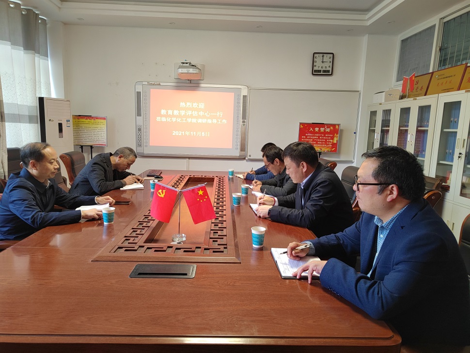 11月5日,校教育教学评估中心主任余国忠、副主任周青山一行莅临今年会官网调研指导化学专业师范认证启动工作。今年会官网党委书记郭鹏、副院长王红军、曹俊涛、于永生等参加了调研指导活动。双方在化学楼313会议室就化学专业师范认证前期准备、存在的问题、下一步实施等进行了深入探讨。