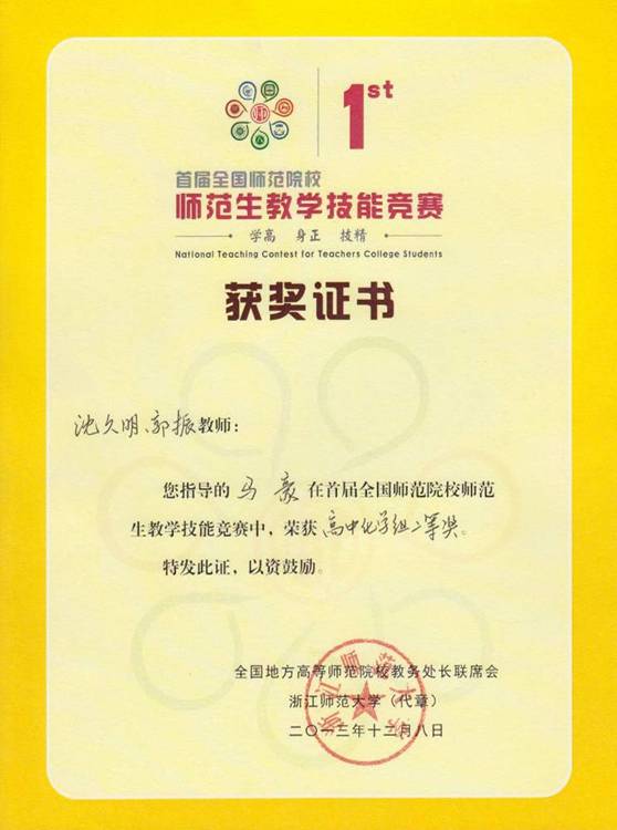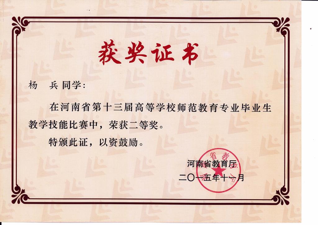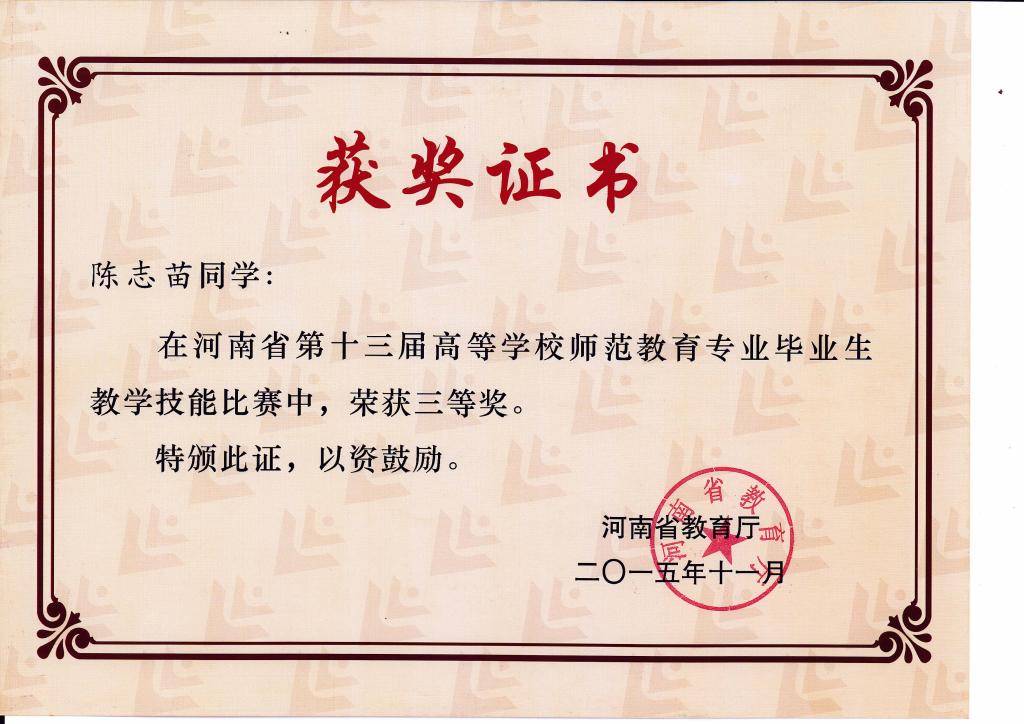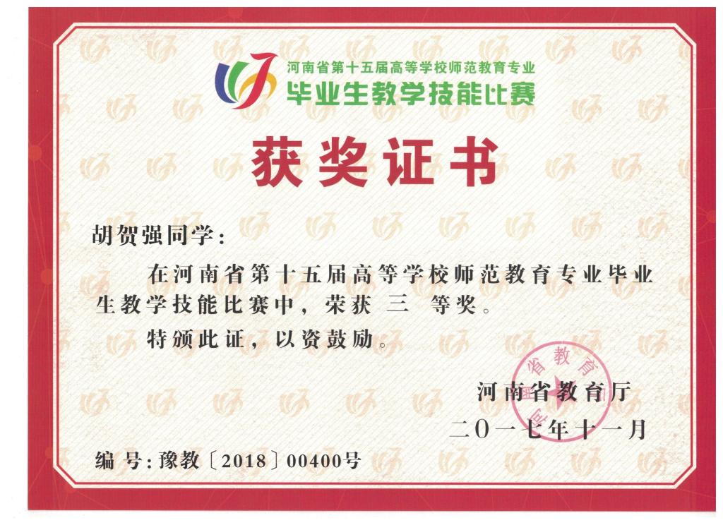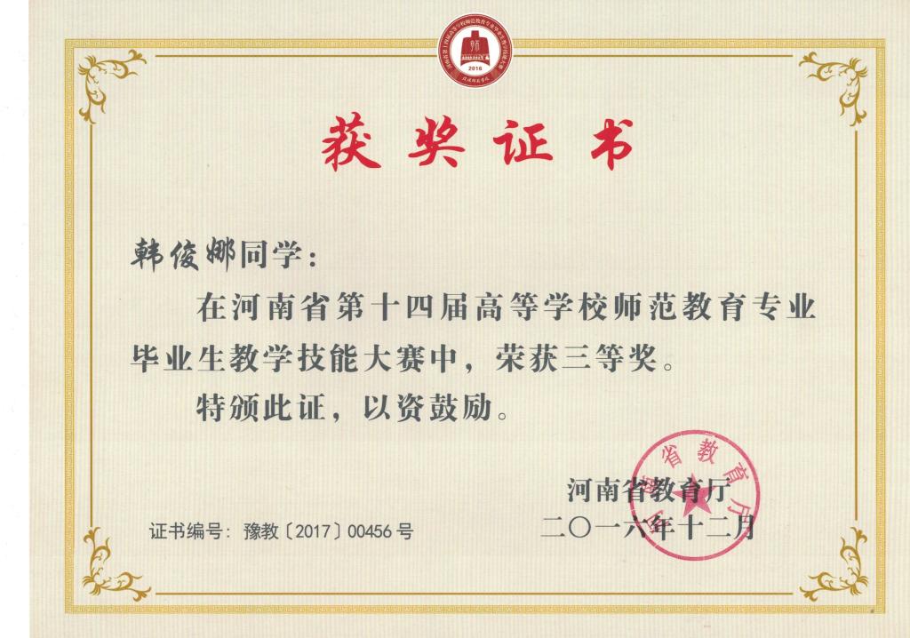 河南省第十一届师范专业教学技能大赛三等奖